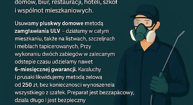 Regionalne Centrum Dezynsekcji, Dezynfekcji i Deratyzacji w Olsztynie – lokalna firma DDD specjalizująca się w zwalczaniu pluskiew, karaluchów, prusaków, rybików, pcheł, mrówek, os, szerszeni oraz myszy i szczurów. Obsługujemy mieszkania, domy, biura, restauracje, hotele, szkoły, wspólnoty i spółdzielnie. Stosujemy nowoczesne metody ULV, oprysk, żelowanie oraz bezpieczne dla ludzi i zwierząt preparaty z atestami. Oferujemy jednorazowe zabiegi, stały monitoring, umowy okresowe i szybkie interwencje 24/7. Dojeżdżamy na terenie Olsztyna i okolic, zapewniamy pisemną gwarancję, rzetelne protokoły z zabiegu oraz uczciwe, przejrzyste ceny. Jeśli zauważyłeś owady w domu lub firmie – zadzwoń, a doradzimy najlepszą metodę zwalczania!
